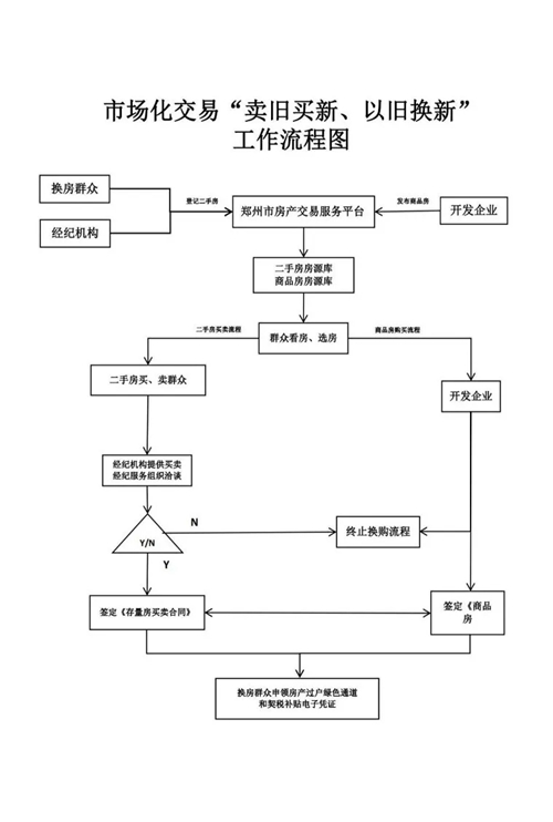 換房群眾可自主選擇通過“鄭州市房產交易服務平臺”或其它渠道掛牌出售二手住房、選購新建商品住房,自由交易實現“賣舊買新、以舊換新”。(二手住房不受城發安居公司收購條件限制、新建商品住房須位于主城區范圍內)