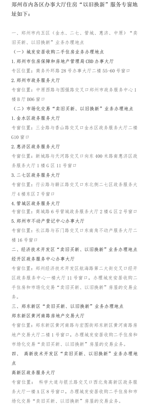 鄭州市內8區10個辦事大廳全部開設住房“以舊換新”服務專窗