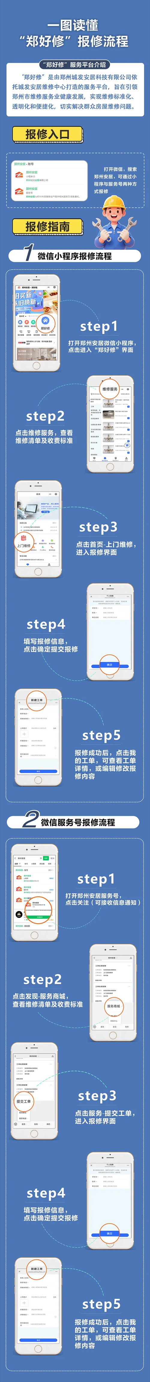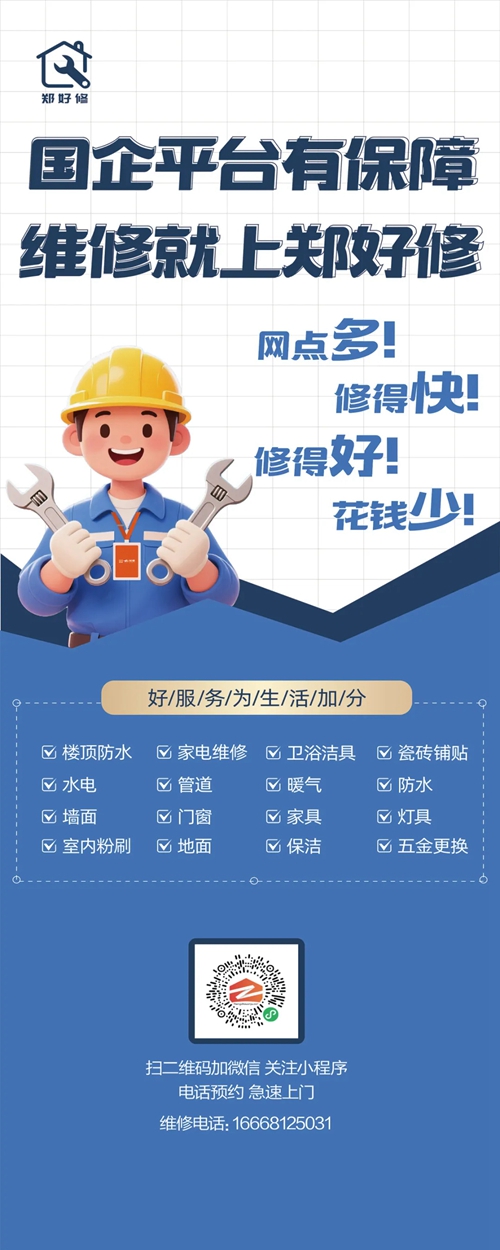 為切實(shí)解決群眾房屋維修難題,推動(dòng)鄭州市維修服務(wù)業(yè)邁向標(biāo)準(zhǔn)化、透明化、便捷化發(fā)展新征程,由鄭州城發(fā)集團(tuán)下屬子公司鄭州城發(fā)安居科技有限公司精心打造的“鄭好修”服務(wù)平臺(tái),正式上線運(yùn)營(yíng)。市民通過鄭州安居微信小程序、鄭州安居微信服務(wù)號(hào),即可輕松實(shí)現(xiàn)一鍵報(bào)修,享受優(yōu)質(zhì)高效的房屋維修服務(wù)。