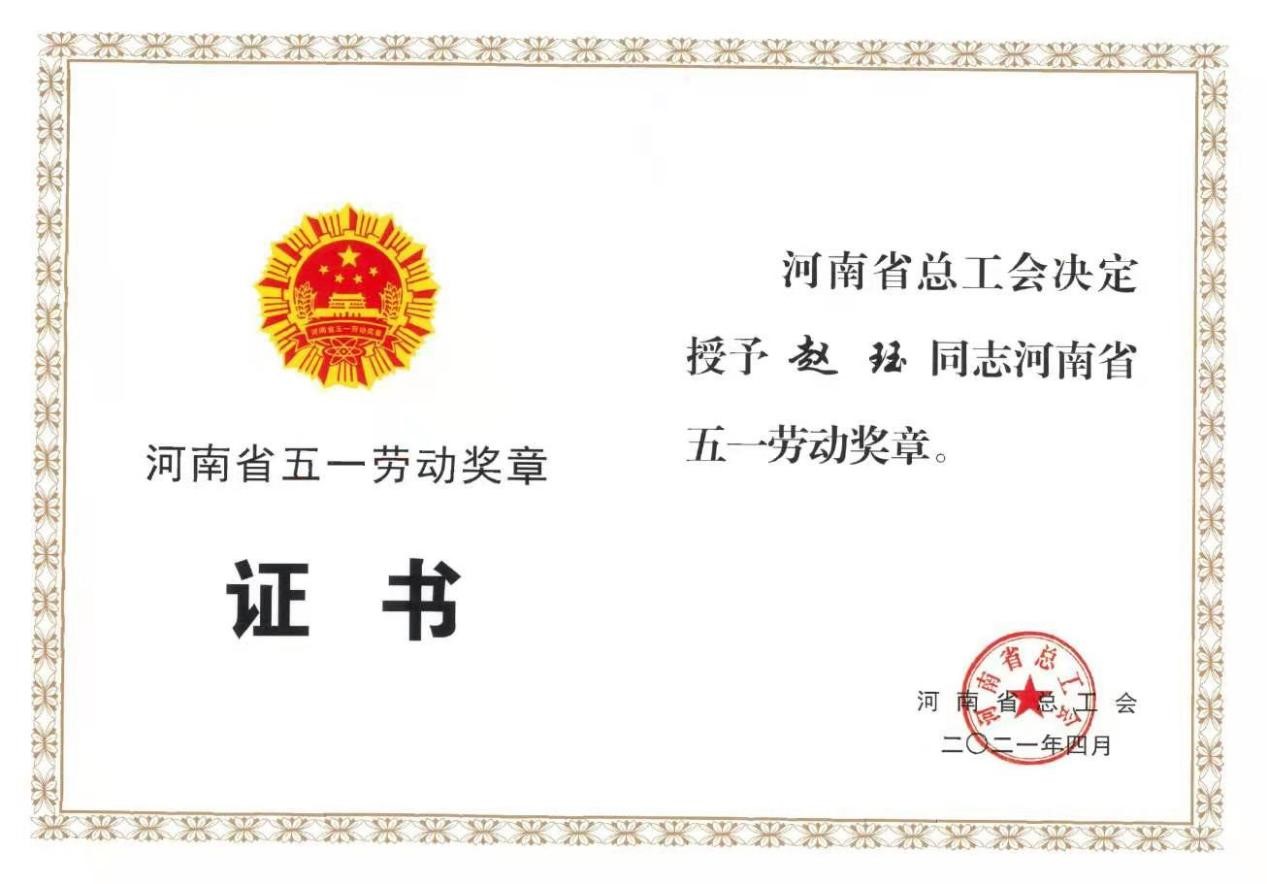 為表彰先進、樹立典型,進一步增強新時代工人階級的自豪感和使命感,營造勞動光榮的社會風尚和精益求精的敬業風氣,河南省總工會印發《關于表彰2021年河南省五一勞動獎和河南省工人先鋒號的決定》,我公司趙玨榮獲“河南省五一勞動獎章”殊榮,彰顯了在平凡崗位上書寫不平凡故事,努力成長為知識型、技能型和創新型勞動者,為公司項目發展不斷賦能。