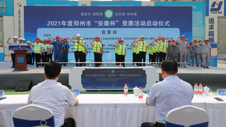 為深入貫徹落實(shí)習(xí)近平總書(shū)記有關(guān)加強(qiáng)安全生產(chǎn)工作的部署和要求,進(jìn)一步強(qiáng)化各級(jí)各部門(mén)、各企業(yè)主體的安全責(zé)任意識(shí),確保我市安全生產(chǎn)形勢(shì)持續(xù)好轉(zhuǎn),職工安全健康不斷鞏固。6月11日上午,由鄭州市總工會(huì)、鄭州市應(yīng)急管理局、鄭州市衛(wèi)生健康委員會(huì)及鄭州市消防救援支隊(duì)主辦,鄭州地產(chǎn)集團(tuán)工會(huì)、鄭州西流湖控股有限公司工會(huì)承辦的鄭州市2021年“安康杯”競(jìng)賽啟動(dòng)儀式在中原新區(qū)廟王東安置區(qū)項(xiàng)目成功舉行。鄭州市相關(guān)組織部門(mén)、市總工會(huì)成員單位、地產(chǎn)集團(tuán)、西流湖公司、各參建單位共200余人參加啟動(dòng)儀式。鄭州市一級(jí)巡視員,市總工會(huì)黨組書(shū)記、主席趙新中、鄭州市衛(wèi)生健康委員會(huì)黨組成員、二級(jí)調(diào)研員楊德林、鄭州市應(yīng)急管理局三級(jí)調(diào)研員安春茂、鄭州市消防救援支隊(duì)副支隊(duì)長(zhǎng)、滅火救援指揮部部長(zhǎng)李隆、鄭州市總工會(huì)副主席宋少丹、鄭州地產(chǎn)集團(tuán)有限公司監(jiān)事會(huì)主席、工會(huì)主席李靜波、鄭州地產(chǎn)集團(tuán)西流湖公司黨支部書(shū)記、董事長(zhǎng)、總經(jīng)理 吉獻(xiàn)亮,中建二局第三建筑工程有限公司西北分公司黨委副書(shū)記、執(zhí)行總經(jīng)理趙海軍出席儀式。啟動(dòng)儀式由市總工會(huì)勞動(dòng)和經(jīng)濟(jì)部部長(zhǎng)宋慧主持。